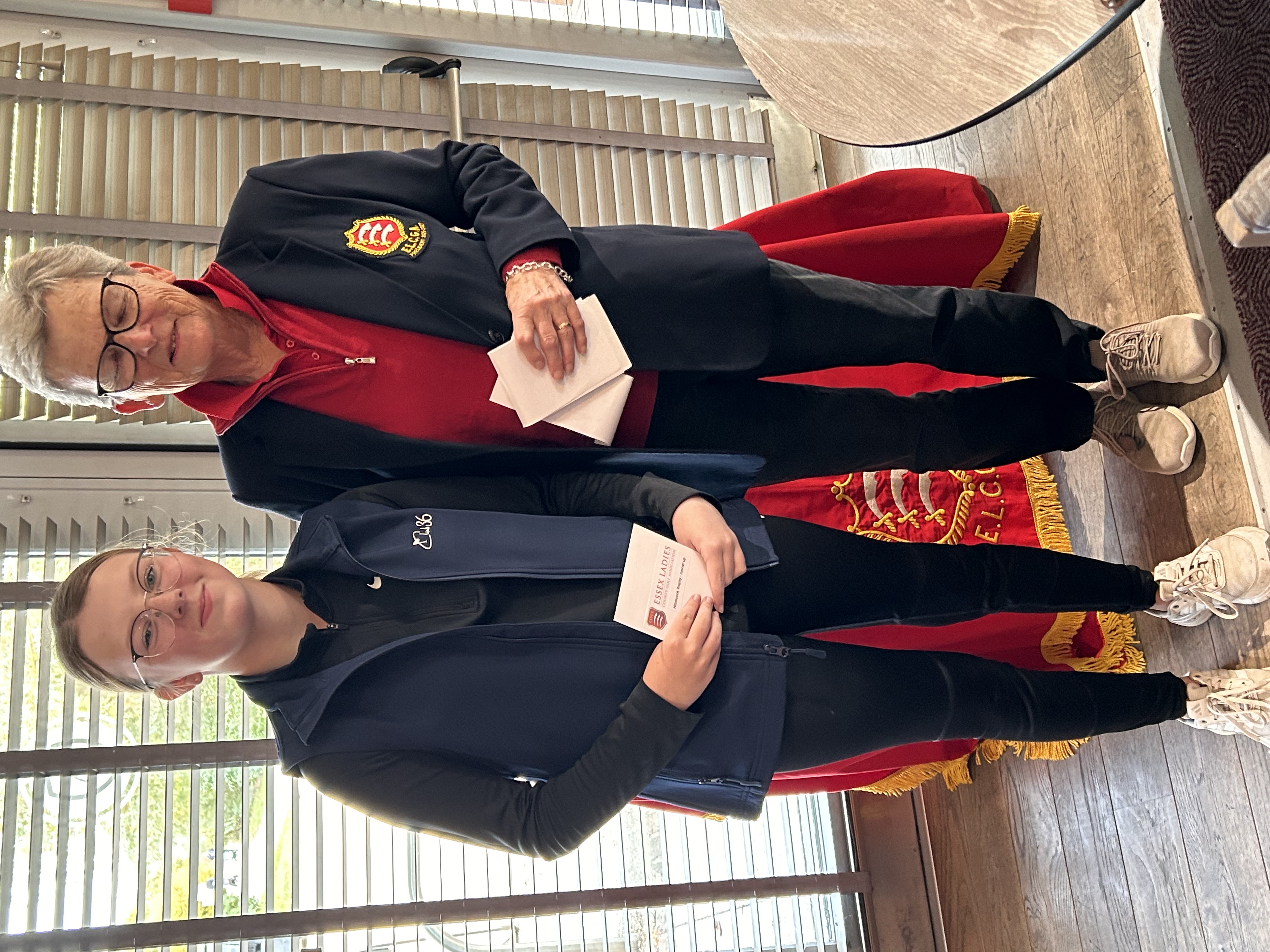 The Hitchcock trophy was being played for by Isis Marquis from Garon Park and Elsa Reason from Chelmsford. Both girls played well and were still all square after 6 holes. Elsa won the next two holes but Isis pulled it back to all square again after 10. Elsa then won 3 holes, but Isis persevered to win them all back by the 17th. Both girls found ditches on the 18th and halved it so extra holes were needed. Elsa secured the match with a par putt on the second extra hole. The girls should be proud of their performance with only a putt separating winner and runner up.