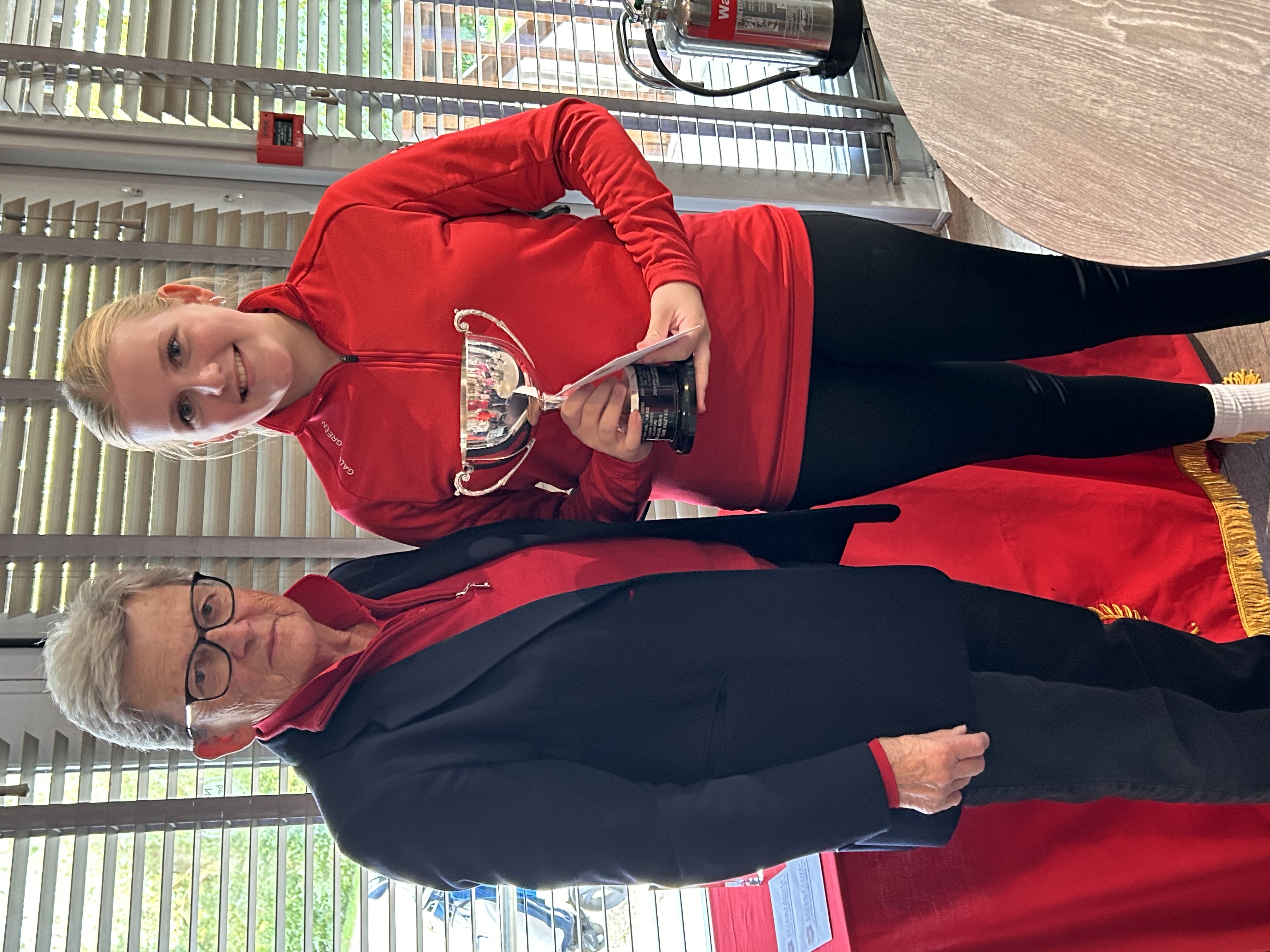 Whilst tea and cake was being enjoyed back in the clubhouse Karen Charles, County President, presented the prizes. Janice Hazeldine, a former President, who instigated the Hunter Foursomes competition presented that prize.