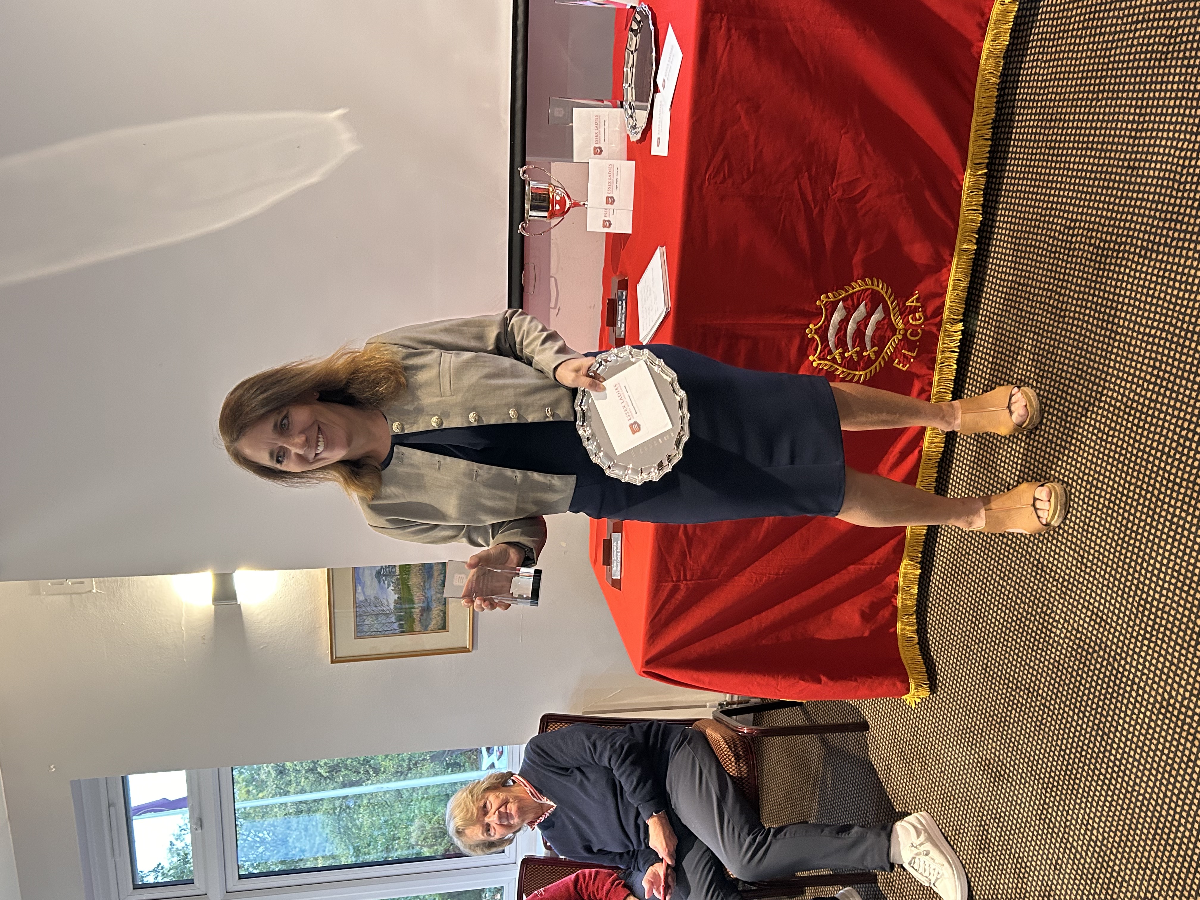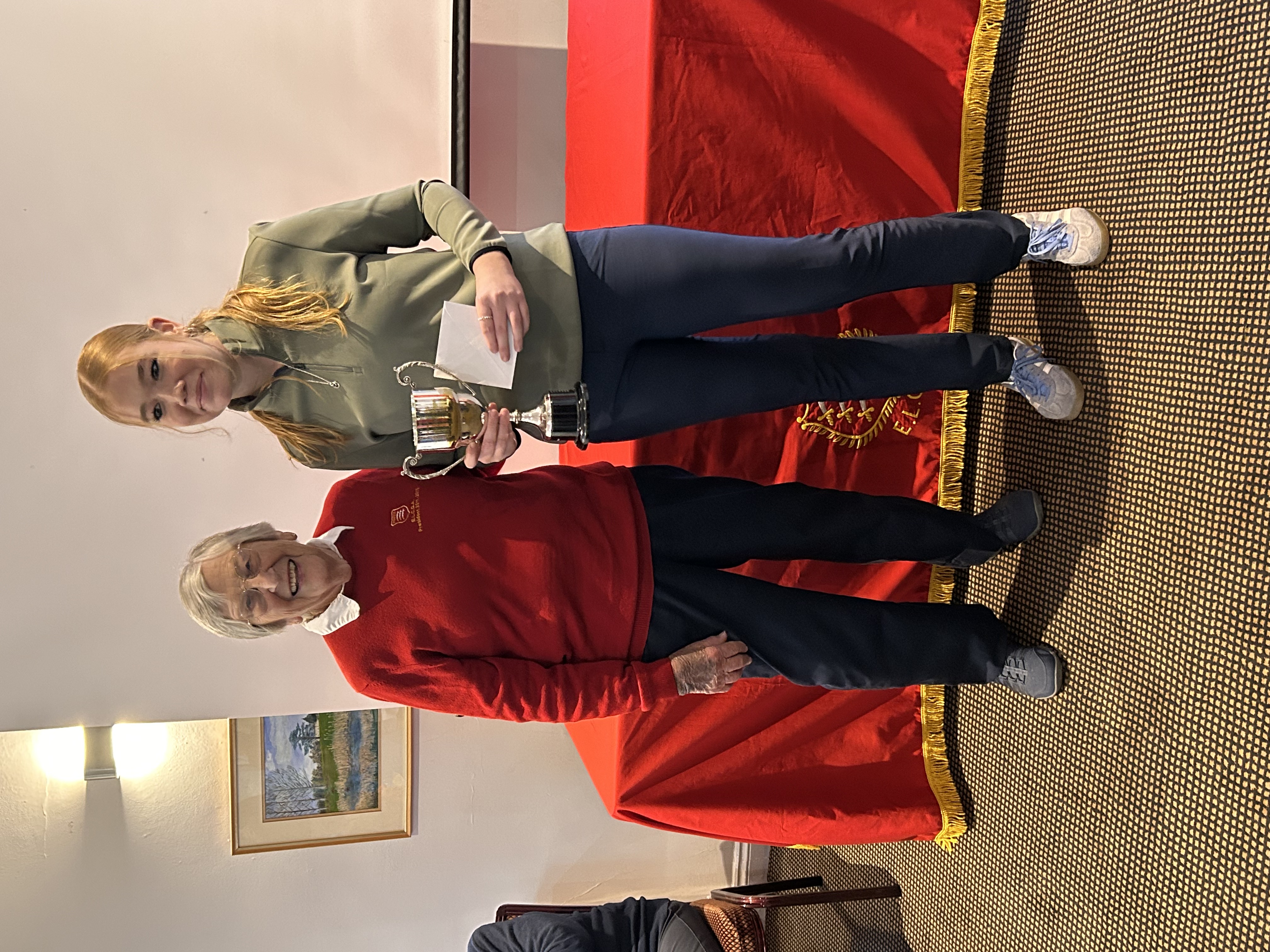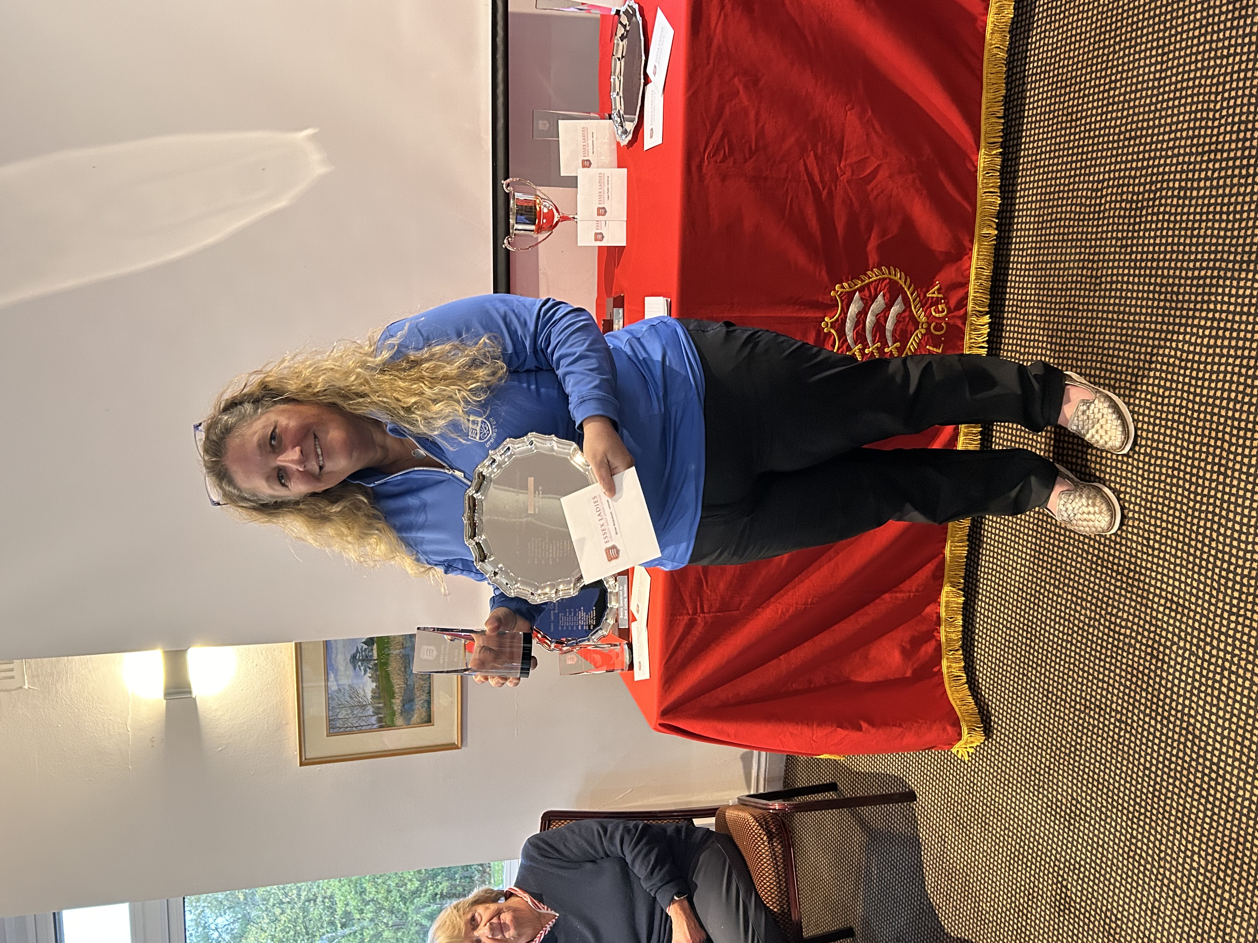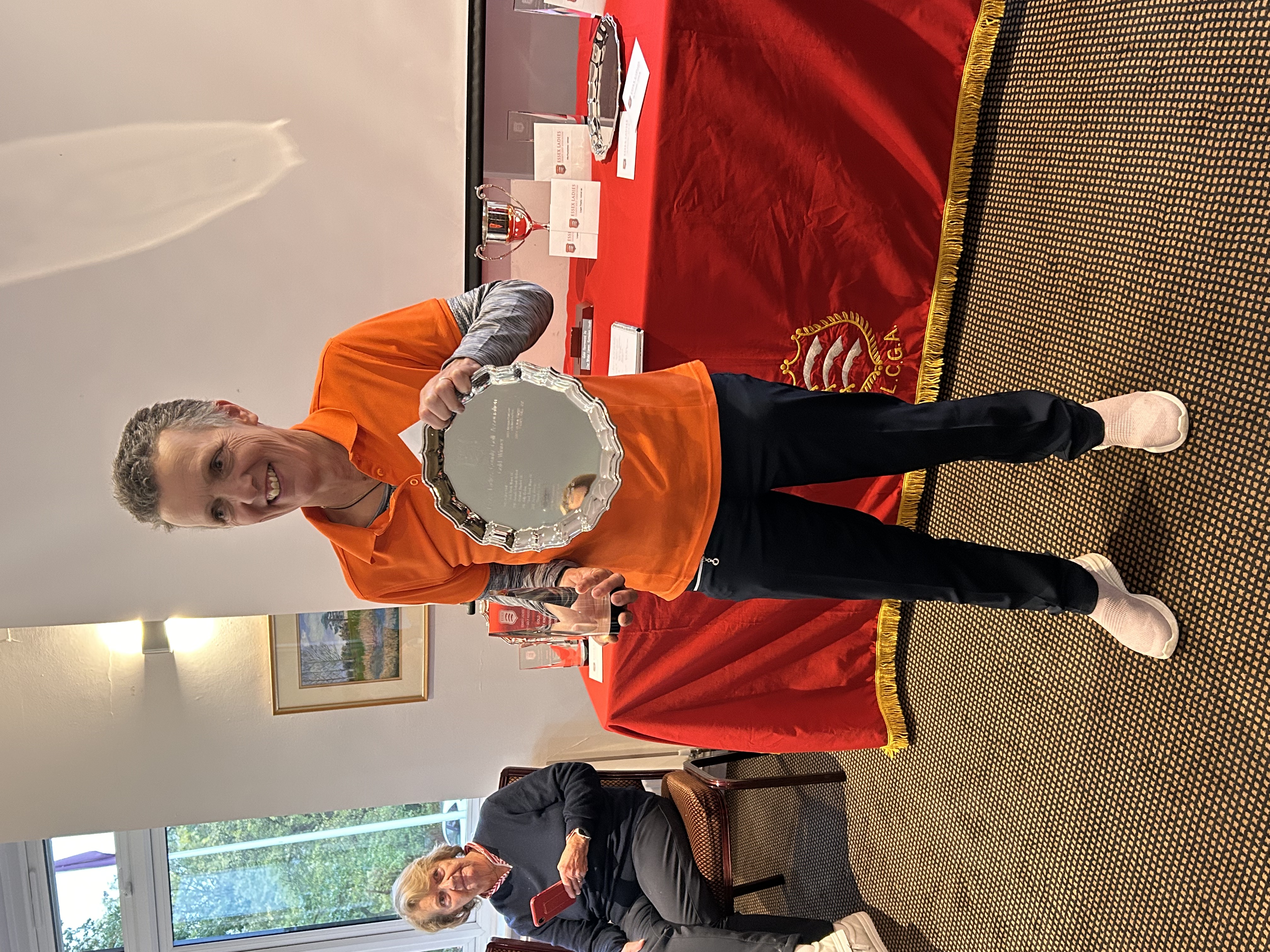The match that had everyone talking while we waited for our tea and cake was the Logan Trophy being played between Evie Stone from The Rayleigh Club and Olivia Savage from The Essex. Evie was receiving 6 shots from Olivia who got off to a strong start going 2up after nine holes which became 4up after 11, but Evie was not letting this match go so she clawed them all back by the 16th. After two halved holes they were off down the first again, in the now steady rain. Three more halved holes followed and then Olivia clinched the match on the par 3 4th extra hole. A mention here for Jo Sheppard the rules official for this match who walked the 22 holes in grim conditions and was still smiling when she came in.